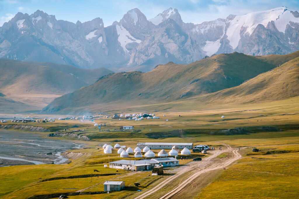 After an hour drive from At-Bashy, we take a scenic ascent over the switchbacks of Bosogo Pass. The landscape unfolds into the vast Ak-Sai Valley, flanked by snow-capped peaks and dotted with summer nomadic yurts. We drive about 3-hours in this valley. Arrival at our yurt camp. Lunch will be served at our camp, followed by some time to relax. In the afternoon, enjoy a gentle hike to nearby hills for panoramic views of the valley, where yaks and sheep graze peacefully. Don’t forget your camera – this is a perfect opportunity for wildlife photography and capturing authentic moments of nomadic life.